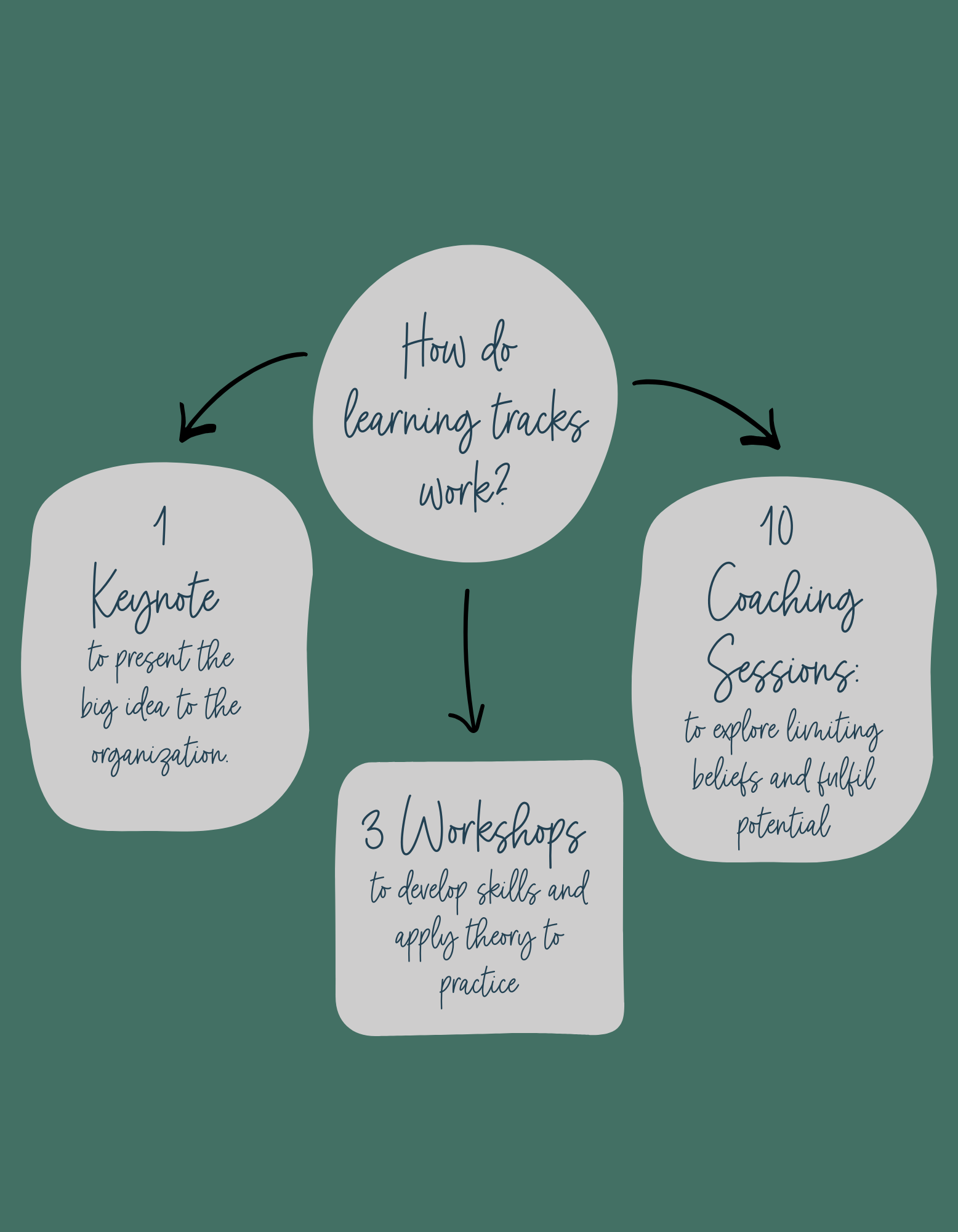 Learning tracks are made up of 1 keynote, 3 skills-based workshops, and 10 integrative coaching sessions.