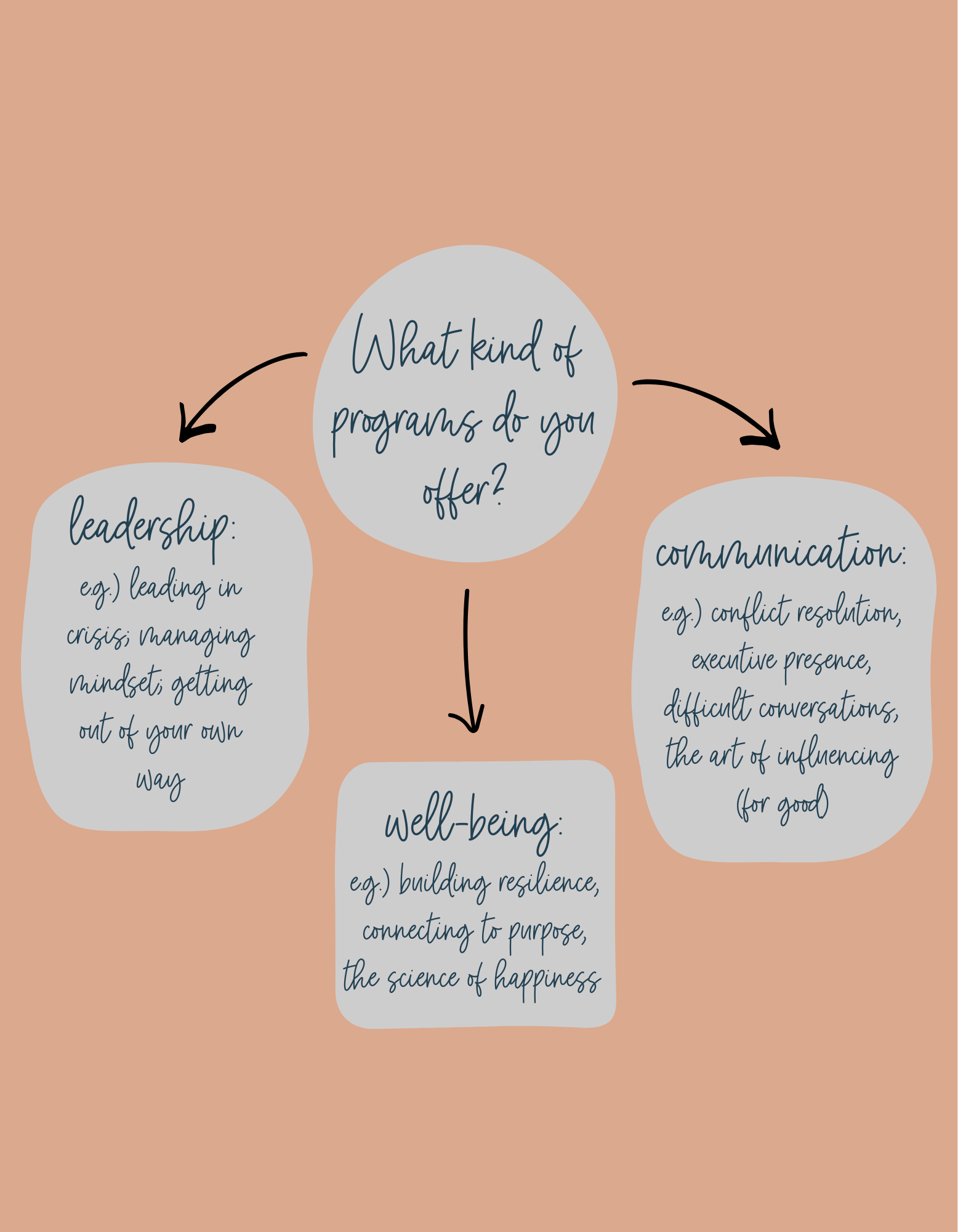 We provide three types of programs: leadership, communication, and well-being. We focus on these 3 areas because they can make or break whether employees flourish, or whether they simply clock in and out to earn their pay check.